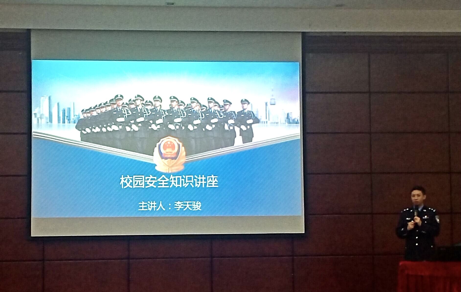 首先,由松山派出所副所长李天骏同志进行校园安全知识讲座,他分别从电信网络诈骗、防盗、消防、反邪教等方面进行了校园安全知识讲座,通过PPT和播放相关视频的方式使同学们进一步了解了诈骗的多种形式,增强了同学们的防范意识。