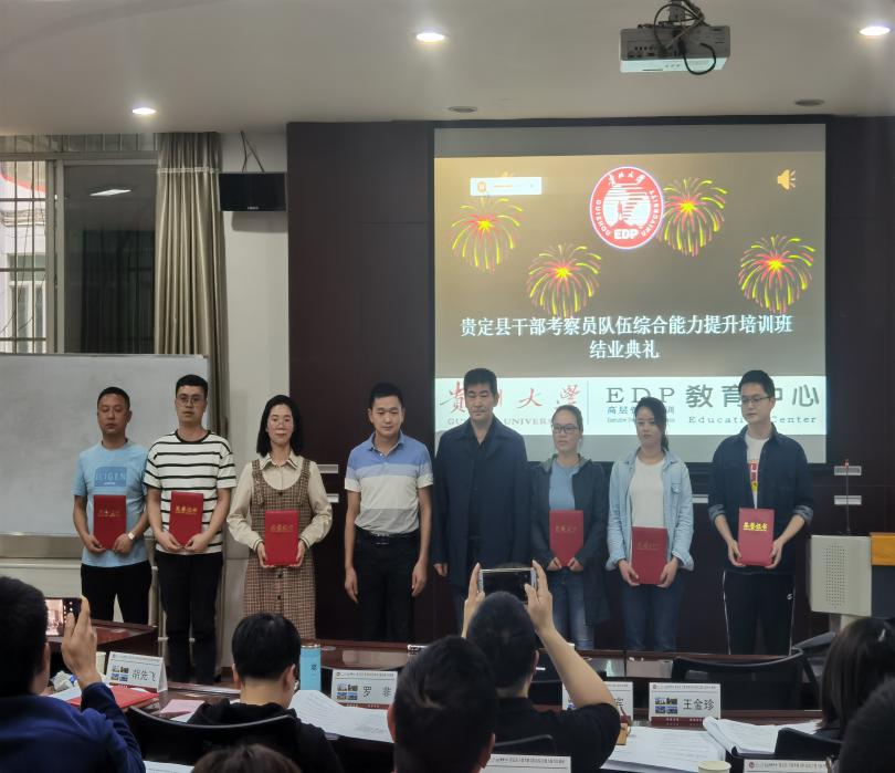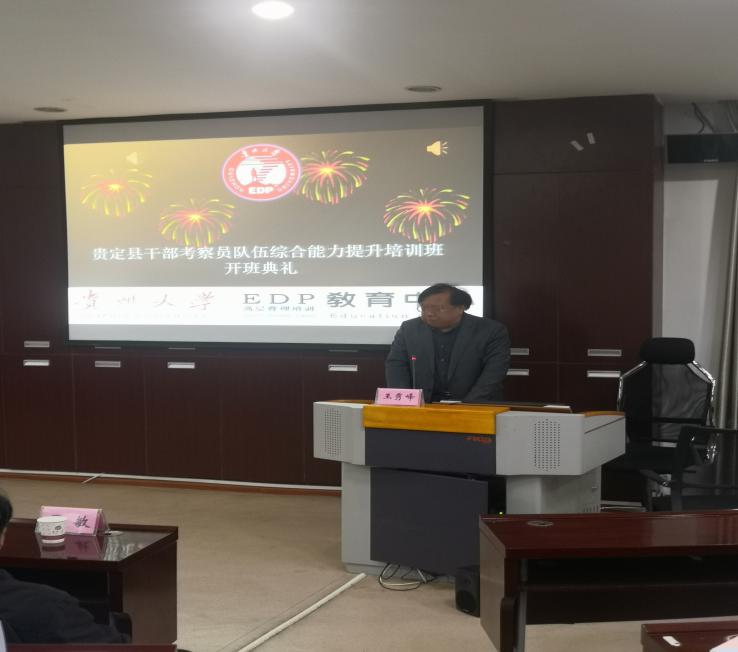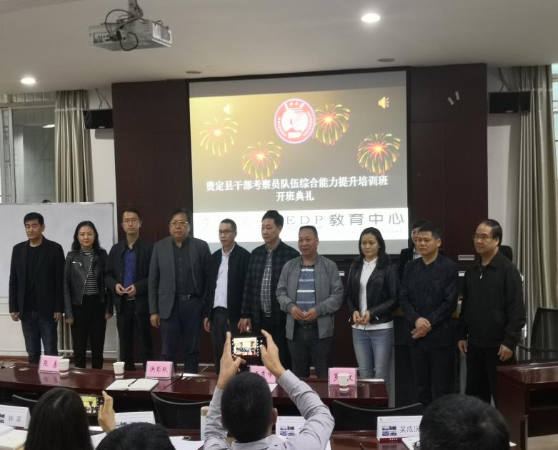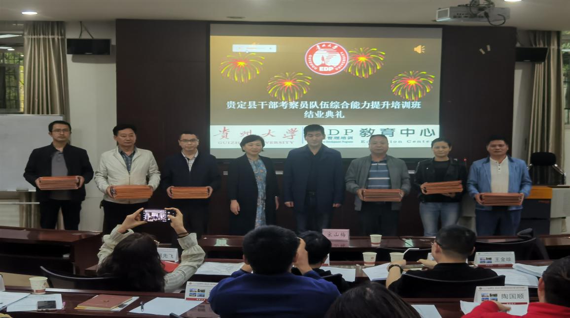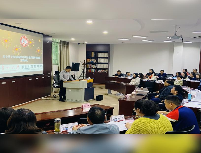 3月29日-4月2日,《贵定县干部考察队伍综合能力提升培训班》在贵州大学北校区管理学院举行。leyu党委书记王秀峰教授,副书记洪影秋、副院长宋山梅教授、副院长罗敏教授和EDP中心主任张勇教授参加了此次培训活动。来自贵定县的主要基层负责人,各机关骨干成员,县委组织部主要负责人共计60名学员参加了此次培训,此次培训活动由贵州大学EDP教育中心承办。