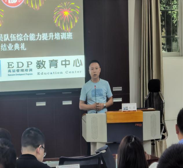 贵定县县委组织部副部长文爱代表学员发言。他希望全体学员能珍惜本次来之不易的学习机会,在培训中认真对待,专注学习,在以后工作中学以致用,为城市发展做出应有贡献。