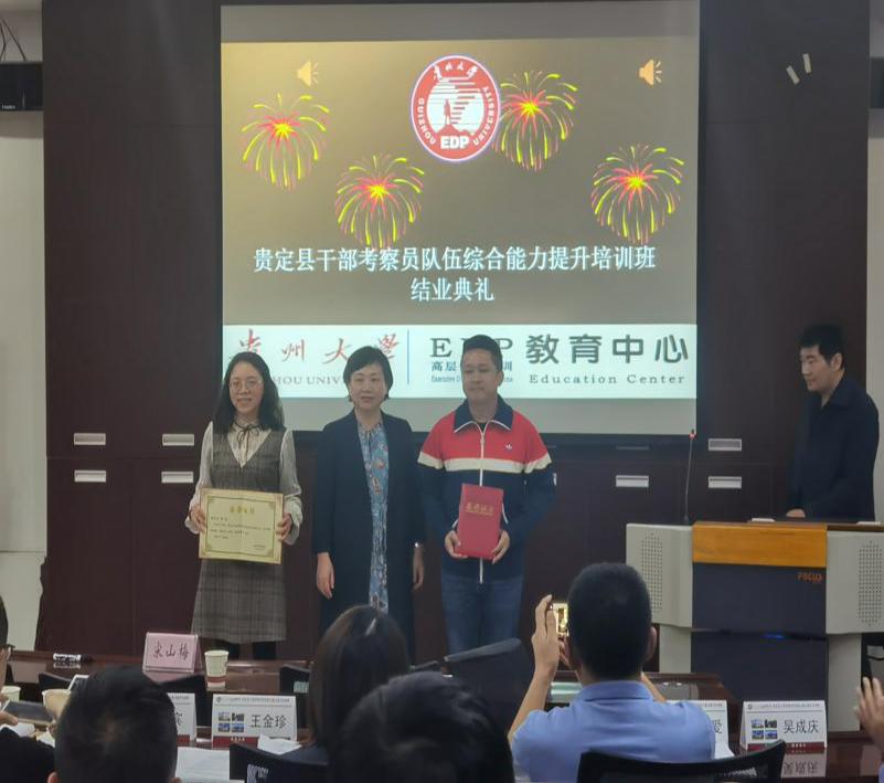 贵定县县委组织部副部长文爱颁发优秀学员证书