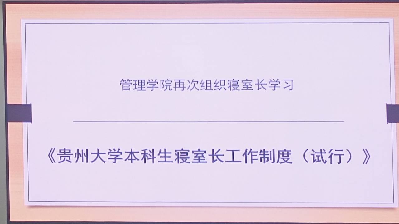 会议伊始,洪书记组织本院寝室长再次学习《贵州大学本科生寝室长工作制度》,该制度共五章,依次为总则、寝室长选任、寝室长职责、考评、附则。文件明确指出寝室长作为学生干部参与学院师生服务工作。同时,洪书记希望寝室长们在工作时做到“五心”,即热心、尽心、细心、苦心、耐心,把寝室长这个学生干部职位当做锻炼的舞台,培养自己沟通、组织、领导等综合能力。