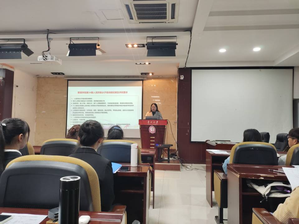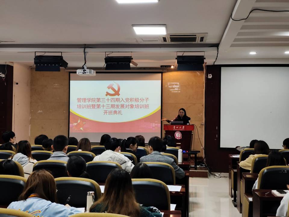 2021年4月17日中午14:00,管理学院在三楼报告厅召开第三十四期入党积极分子培训班暨第十三期发展对象培训班开班典礼。出席本次活动的有管理学院党委书记王秀峰教授、党委副书记洪影秋老师、研究生科科长徐兰老师、学生科科长芮丽华老师、团委负责人陈芊羽老师以及第三十四期入党积极分子培训班和第十三期发展对象培训班全体学员。本次活动由陈芊羽老师主持。