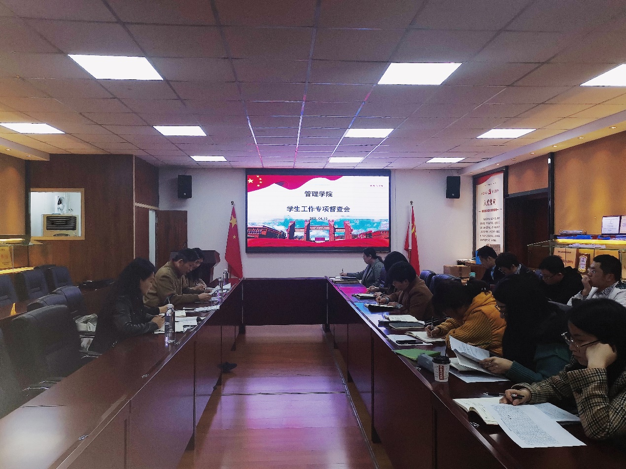 洪影秋副书记对校专项督查组第六组到官方网站开展专项督查工作表示欢迎,并就学院学生工作总体情况和重点工作作了介绍。管理学院现有在校生1178名,24个班级,19位班主任。学院紧紧围绕“三全育人”,要求全体教师在学习、生活等各个方面为学生提供指导与帮助。学院紧抓学生成长成才这根主线和死守学生安全这根底线。院领导、班主任、辅导员通过走访寝室、召开班会、个人沟通交流等方式关心关爱学生成长,为学生成才保驾护航。学院辅导员和班主任定期认真组织开展学生安全排查工作。在开展过程中,分管学生工作的党委副书记、辅导员和班主任对学生关心关爱,把排查、教育与管理紧密结合起来,增强了与学生的联系,切实消除了一定的安全隐患,确保学生生命财产安全和校园安全稳定。学院党政领导高度重视 “博学计划”和“征兵工作”的开展,多次召开专门党政联席会议。“博学计划”方面,学院一边选派责任心强,业务能力优秀的老师担任相关课程老师。另一边,学院在可用教室紧张的情况下,指定了四间“博学计划”专用教室。各班主任、辅导员深入学生寝室,召开班会,为学生提供专业辅导。征兵工作方面,学院成立征兵工作小组,定期召开全院范围内的征兵宣传动员会。学院领导、班主任、辅导员采用“一对一”等多种形式,多层次动员。目前已有一名应届生成功入伍,多名同学准备上站。