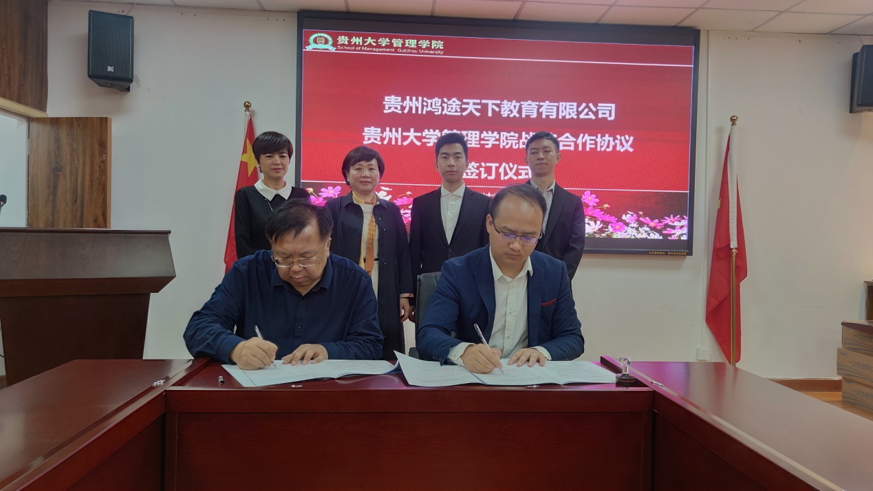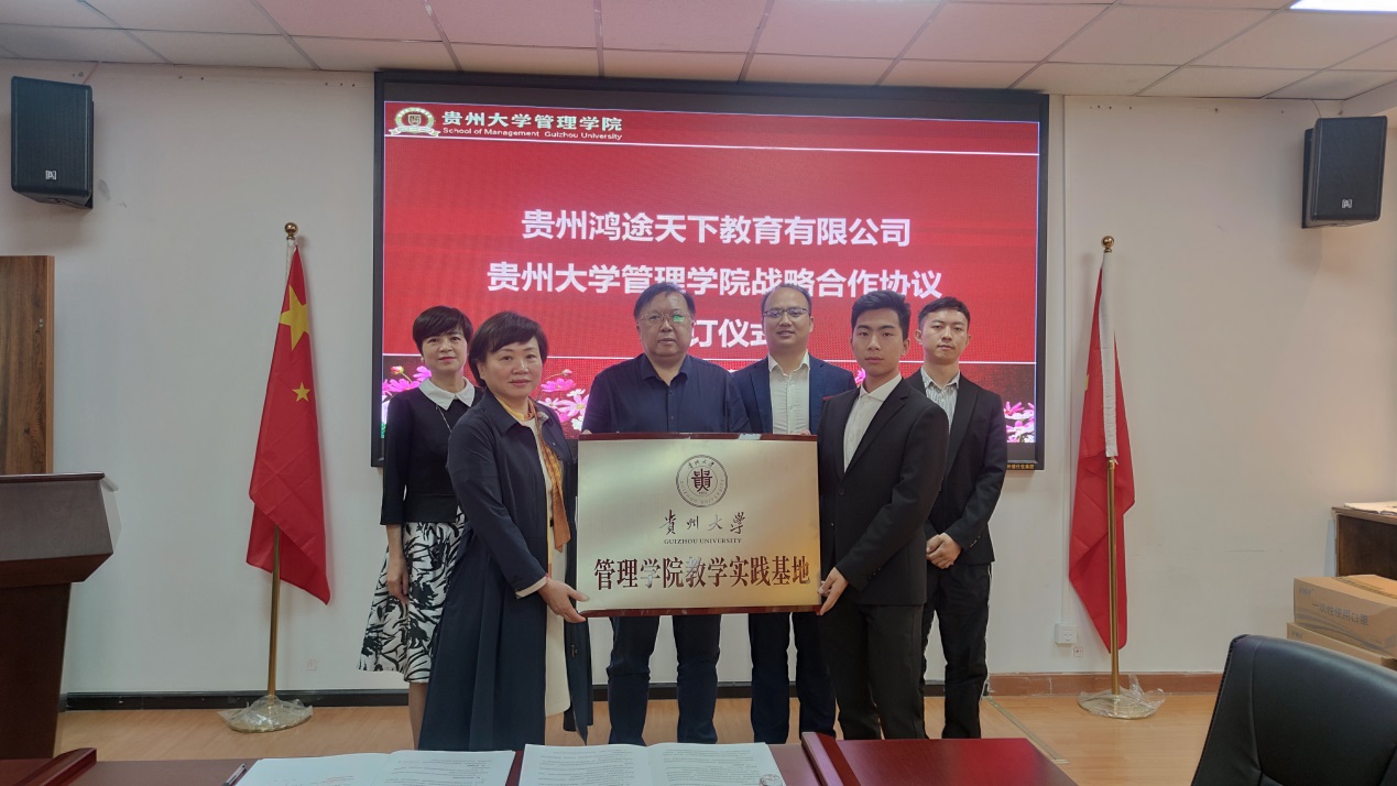 为丰富管理学院学生实践基地资源,促进产学研相结合,强化大学生实践及创新能力, 2021年5月28日,管理学院与贵州鸿途天下有限公司签订校企合作框架协议及共建教学实践基地协议,同时举行了实践基地授牌仪式。管理学院党委书记王秀峰、副院长宋山梅、对外合作办公室主任王云出席仪式,仪式由副院长宋山梅主持。