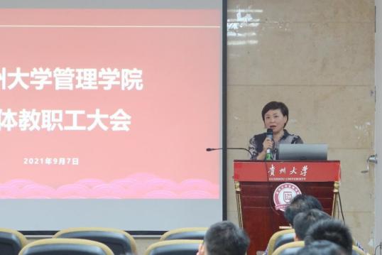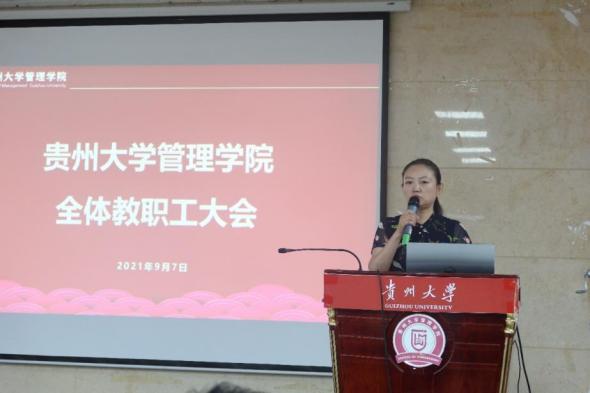 会上,院党委书记王秀峰传达了习近平总书记“七一”重要讲话精神,省委副书记、省长李炳军在贵州大学调研指示精神,以及贵州大学2021年秋季学期开学工作会暨高质量发展工作推进会议精神,并就上学期工作作简要总结、研究部署新学期相关工作。他指出,学习贯彻党的重要理论精神,是当前和今后时期的重大政治任务,我们要切实提高政治站位,做到在工作中自主学、自觉学、自愿学,将理论与实践相结合,高站位、高标准、高质量、高效率推进党史理论学习教育各项任务落到实处、细处、深处。他强调,贵州大学作为贵州一流高校,师生作为贵州区域乡村振兴工作先锋队队员,管理学院作为管理型人才培养基地,要充分扎根贵州大地、利用专业优势,在科教文卫和农林牧渔中主动建言献策,发挥示范引领作用,勇担贵州人民生活水平日益提高的助推器责任。他希望,全院教职工能再接再厉,在新学期继续将学科和产业深度融合,给产业镀金,将学科落实,把乡村振兴事业牢记在心,真正为学校“部省”合建和双一流建设添砖加瓦,为开创百姓富生态美多彩贵州新未来注入源源不断的动力。
