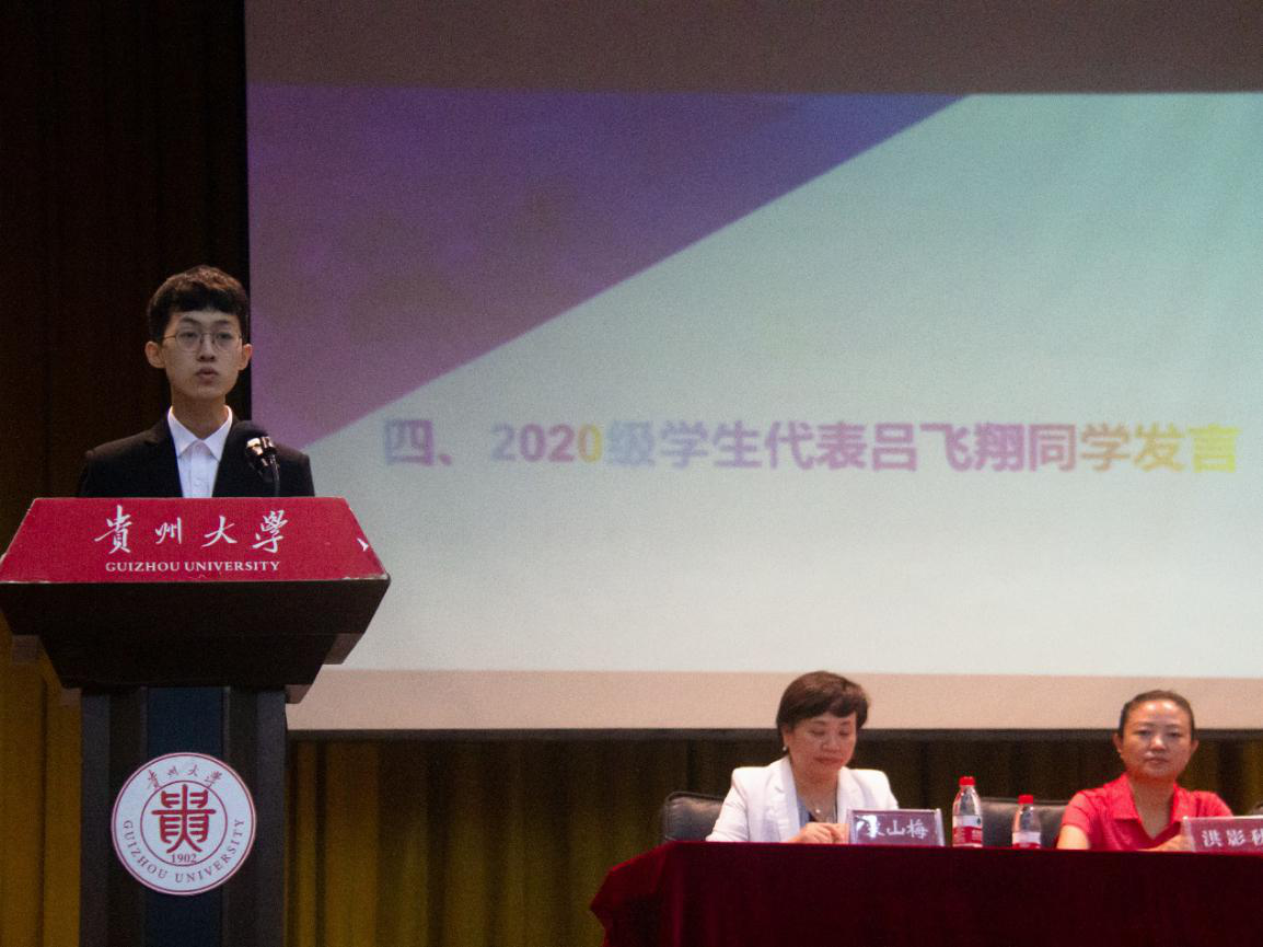 接着,2020级学生代表吕飞翔同学发言。吕飞翔同学积极号召同学们要向时代的伟人学习,在大学中生活学习要有自己的规划,与此同时提高自己的价值和竞争力。