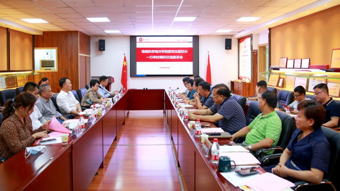 9月25日下午,海南热带海洋学院副校长廖民生一行来leyu交流座谈,座谈会在致远楼3楼陈列室召开。