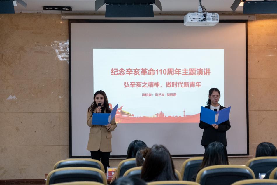 为深入学习贯彻习近平总书记在纪念辛亥革命110周年大会上的重要讲话精神,培养管理学院研究生学子服务国家服务人民的社会责任感,1110号下午,管理学院研究生“弘扬革命先驱精神,共筑民族复兴伟业”主题演讲比赛在我校东校区致远楼三楼报告厅举行。管理学院党委副书记洪影秋出席活动,院研究生科科长徐兰、辅导员罗敬以及研团委、三助中心等校级组织学生代表参与此次活动并担任评委。活动由2021级管理科学与工程硕士研究生胡玲玲、吴冠熊主持。