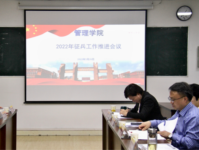 526中午,学院在致远楼四楼403教室召开2022年征兵工作推进会,学院领导班子出席会议,各科室负责人,各系主任,全体辅导员及学生代表参加会议,会议由院长李烨主持。