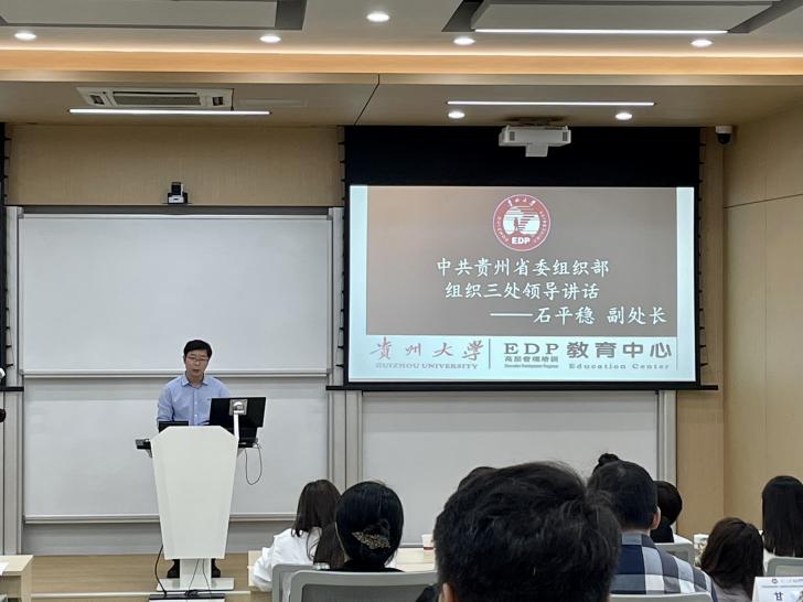 中共贵州省委组织部组织三处副处长石平稳,贵州大学党委副书记令狐彩桃、贵州大学组织部副部长张瑞良,贵州大学对外合作处副处长,贵州大学教育培训管理工作专班负责人付芳,leyu党委书记王秀峰、leyu副院长宋山梅,贵州大学EDP教育中心主任张勇出席本次培训开班式。