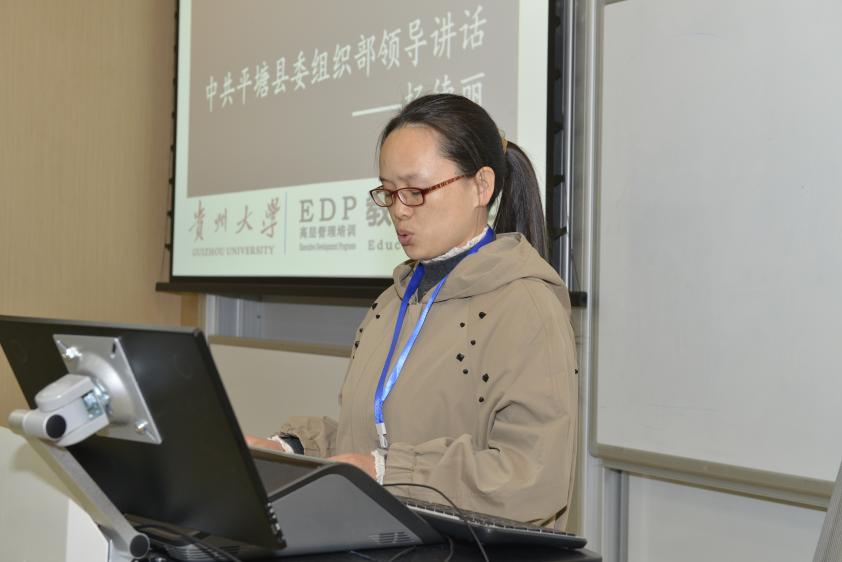 平塘县远教办(县委党建办、县委党代表联络办)三级主任科员杨德丽作为学员代表发言时表示:我县还处于巩固脱贫攻坚成果衔接乡村振兴的过渡期,乡村要振兴,人才是关键。举办本次培训班,就是要提升我们人才工作者的综合素质,提升我们服务人才的工作能力,凝心聚力,统一思想,形成人才工作合力,共同为建设党的事业贡献力量,为建设美丽平塘出力。