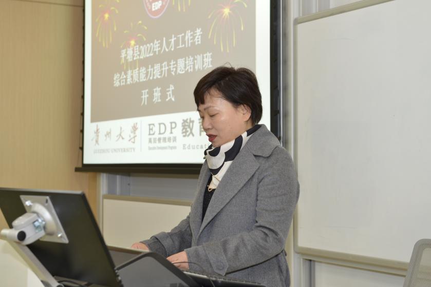 leyu党委书记王秀峰,leyu副院长宋山梅,贵州大学EDP教育中心主任张勇出席本次培训开班式。开班式由贵州大学EDP教育中心主任张勇主持。