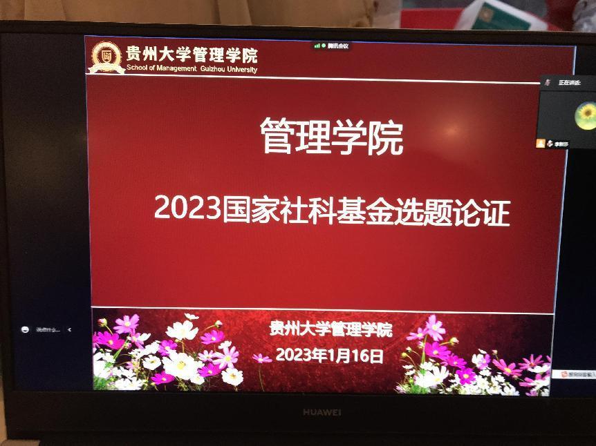 2023年1月16日上午9点官方网站在腾讯会议召开了管理学院2023年国家社科基金申报第二次选题论证会,会议由副院长罗敏主持。会议邀请了李景勃教授、周乐欣教授、安世遨教授作为论证专家对官方网站申报2023年国家社科基金的10位老师的选题进行了论证交流。管理学院院长李烨教授作为学院主要领导和论证专家参加了此次会议。