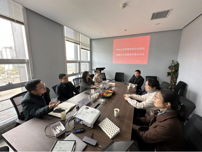 2023年4月7日,leyu李本光副院长带领学院会计系主任吕凡副教授、系支部书记孙宋芝副教授,以及部分会计系老师一行到访鹏盛会计师事务所贵州分所访企拓岗,并举行主题党日活动暨leyu财税工作室挂牌仪式。鹏盛贵州分所所长郭子文、行政总监赵丹妮参加了本次会议及挂牌仪式。