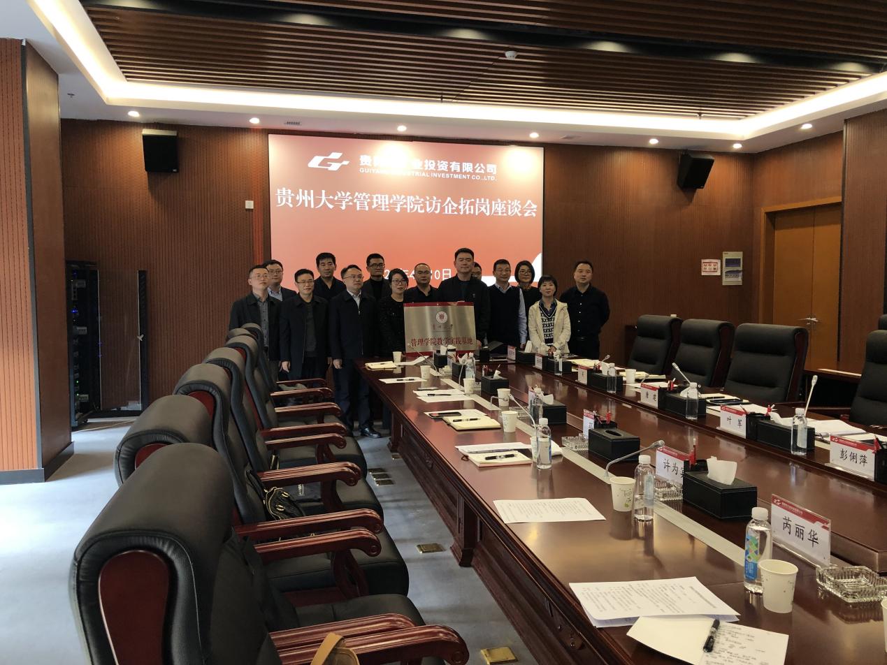 在调研活动中贵州大学管理学院院长李烨、副院长李本光、 党委副书记、纪委书记邓琳、对外合作办主任刘梅、学生科科长芮丽华、EDP教育中心主任张勇、工商管理系主任兼系支部书记许为宾、市场营销系主任刘遗志、会计系主任吕凡一行实地走访了贵阳市工投公司下属企业贵州贵铝新材料股份有限公司,并就企业发展战略、业务板块、组织架构和国有企业改革等方面取得的成绩,以及人才需求、薪资待遇等进行了解。