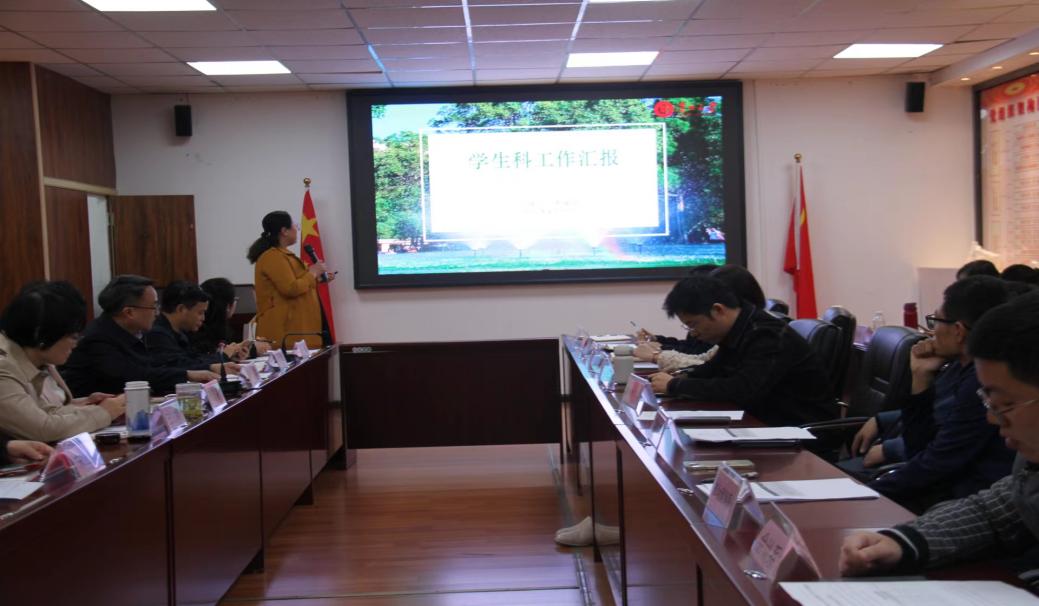 学生科科长芮丽华老师对学生科工作情况进行汇报。她从2022年的工作总结,2023年的工作开展情况,目前存在的困难以及下一步的工作思路四个方面进行工作汇报。2022年,学生就业率显著提高,如期达到学校要求,征兵任务超额完成,并且在共青团活动等相关活动获得多项荣誉奖项。