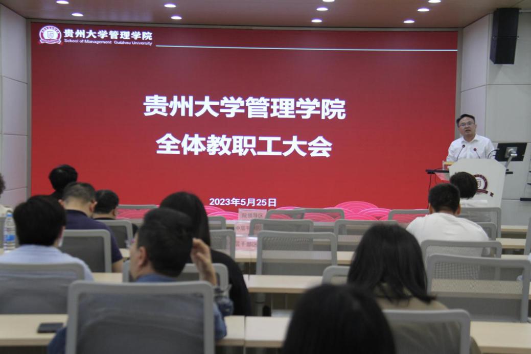 2023年5月25日下午,学院在三楼报告厅召开全体教职工大会、政治学习暨“师德师风铸魂,名师赋能成长”启动会。管理学院党政领导及全体教职工参加会议。