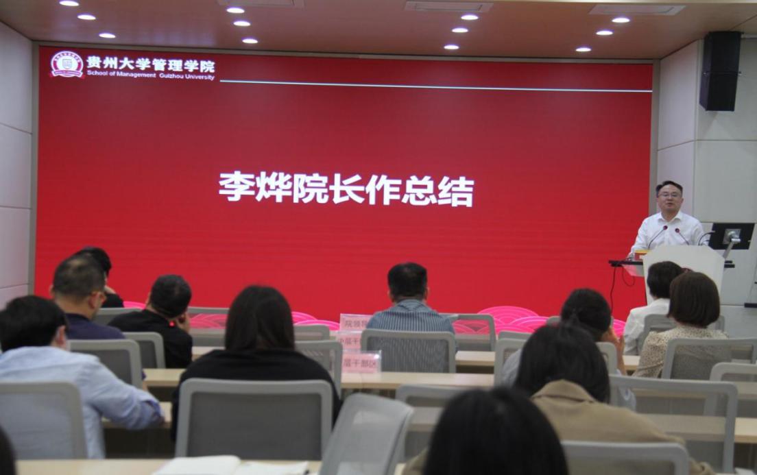 李烨院长最后强调,学院全体教职工要深入学习贯彻习近平新时代中国特色社会主义思想和党的二十大精神,增强看齐意识,提升学习能力,要能够在工作中学习,在学习中工作,向优秀看齐,做好教书育人工作,面向国家和地方重大战略需求,做有价值的研究,助力学院高质量发展,助推贵州大学双一流建设。