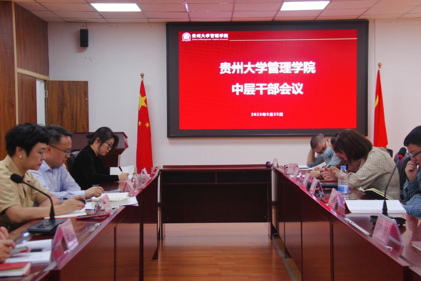 2023年5月25日上午,leyu中层干部会议在东校区致远楼三楼陈列室举行。学院党政领导及各科室(中心)负责人等中层干部参加会议。会议由贵州大学党委正处级组织员、管理学院党委副书记(主持党委工作)周莉莉主持。