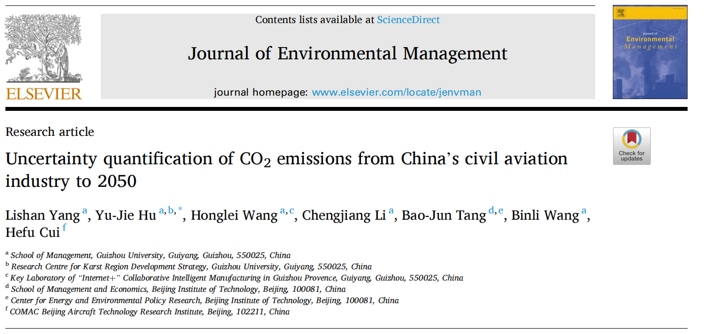 2023年6月9日获悉,官方网站胡玉杰副教授及其指导的2021级管理科学与工程学术型研究生杨莉杉围绕双碳背景下的中国民航业碳减排路径研究取得阶段性进展,研究成果《Uncertainty quantification of CO2 emissions from China’s civil aviation industry to 2050》在国际权威期刊《Journal of Environmental Management》上在线发表,leyu为第一署名单位。这是贵州省致力于民航业双碳研究领域的首篇高质量高水平论文。