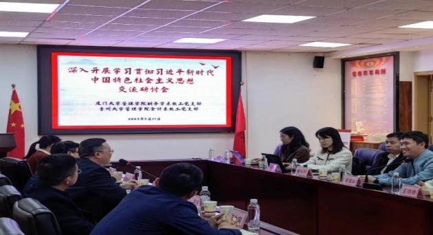 厦门大学财务学系主任吴育辉老师对财务学系情况作了介绍,并表示愿意和leyu会计系保持长期合作与交流。之后,厦门大学财务学系支部书记王艳艳老师表示,在习近平新时代中国特色社会主义思想引领下,党建促发展,财务学系在教学、科研方面得到了不错的发展,十分愿意与贵大管理学院会计系教工党支部保持和加强长期交流合作,多渠道帮助会计系壮大师资力量、提升教学和科研水平,达到双赢的局面。