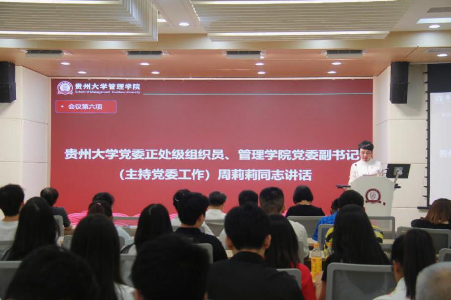 最后,校正处级组织员,管理学院党委副书记(主持党委工作)周莉莉讲话,她表示,历史和现实都证明,中国共产党不愧为伟大光荣正确的马克思主义政党,因此,我们党员更要发挥好先锋模范作用。希望大家以受表彰的优秀个人和先进集体为榜样,大力营造学习先进、争当先进、赶超先进的浓厚氛围。周书记强调,希望大家做坚定信仰信念的模范,希望广大师生党员要筑牢信仰之基,不断加强党性锤炼,坚持不懈学习贯彻习近平新时代中国特色社会主义思想,牢固树立为党育人、为国育才的初心使命,奋力走好新时代长征路。