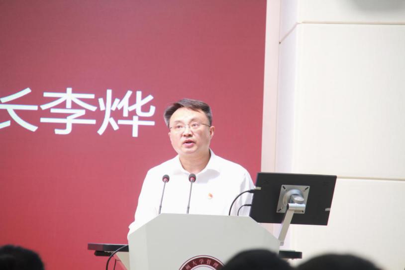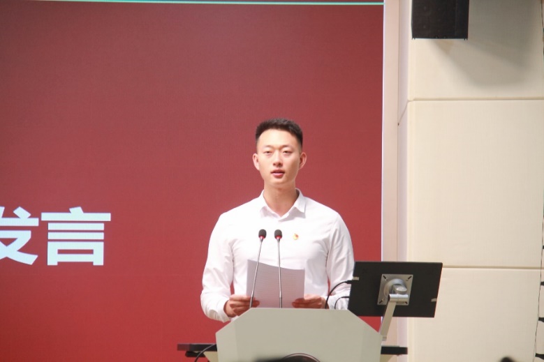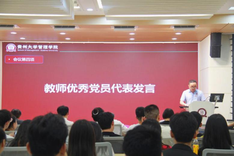 学生优秀党员代表张玉达发言,在回顾我党的光辉历程以及自己在校经历后,他表示,今后,无论身处何时何地,无论从事何行何业,自己都会铭记“明德至善,博学笃行”的校训,以实际行动来践行全心全意为人民服务的庄严承诺,将自己融入到中华民族伟大复兴的征程之中。在发言的最后,他由衷祝愿,管理学院在高质量发展上再创佳绩,在教学育人的道路上捷报频传,桃李满天下,春晖满四方。