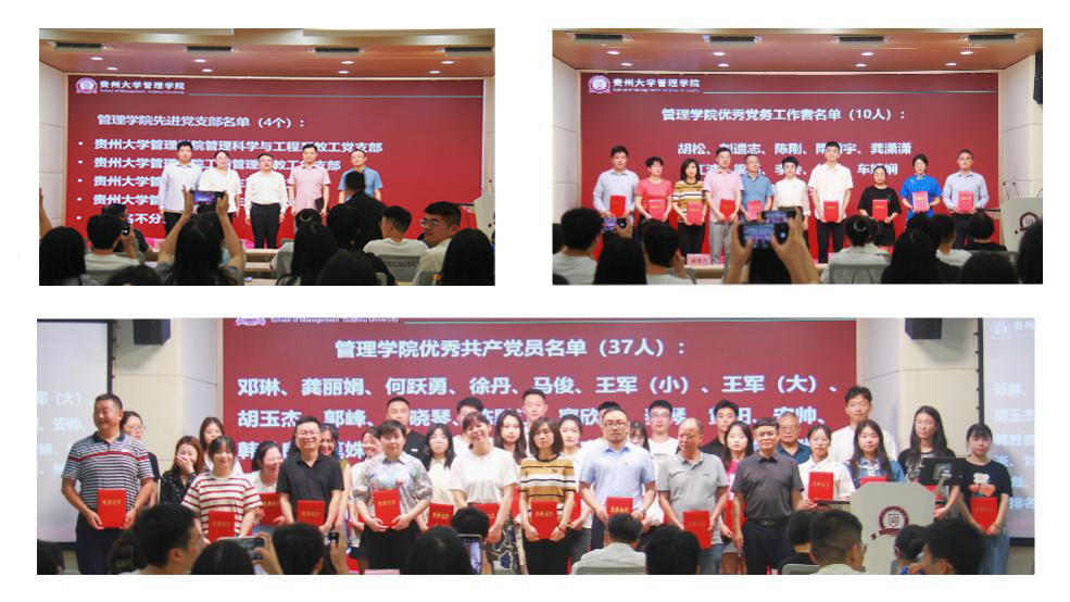 管理学院院长李烨宣读表彰决定,向获奖的党员同志表示祝贺,向本学院辛勤工作的党员同志表示亲切的慰问。随后,学院领导分别给先进党支部、优秀党务工作者、优秀共产党员颁奖,并合影留念。