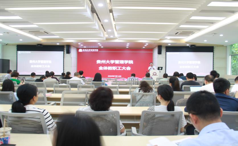 2023年7月14日中午,leyu在致远楼三楼报告厅组织召开全体教职工大会暨政治学习。学院党政领导出席会议,全体教职工及学生代表参加大会,会议由院长李烨教授主持。