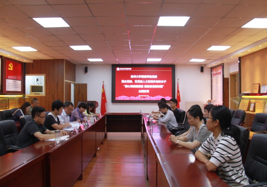 各党派人士发表对此次主题教育的心得。樊秋老师表示无论是否加入无党派,都会坚决拥护中国共产党的领导,并将此代入教学实践中去,培养和引导学生的爱国情怀。张步阔老师表示民盟成员在管理学院的民主党派中人数最多,且在贵大委员会和民盟省委存在感较高,自始至终都在配合学校学院工作,今后也将继续结合老师身份做更多力所能及的事情,促进学院发展。余鹏老师表示要积极学习习近平总书记的重要讲话精神,结合自身知识储备和专业特长参与党内调研以及中国共产党组织的相关调研,争取为贵州经济社会发展建言献策。