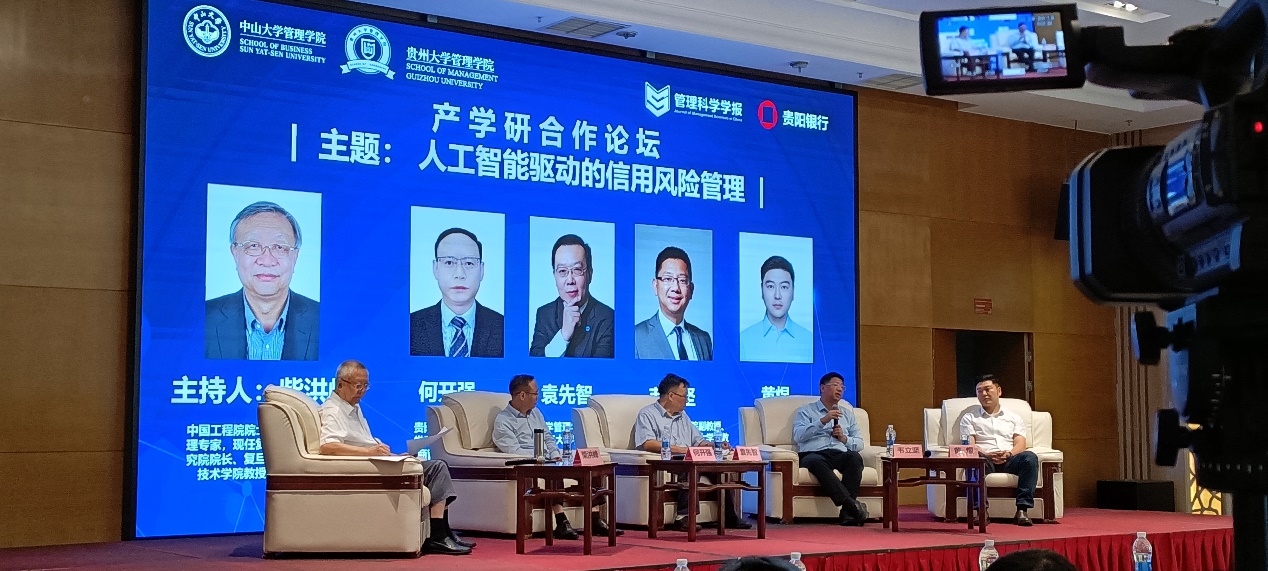 在随后的产学研合作论坛:人工智能驱动的信用风险管理的讨论中,主持人中国工程院院士柴洪峰教授和袁先智、韦立坚、何开强、黄煜四位嘉宾分别就当下的大数据与人工智能的热点话题,对银行的信用风险管理提出了自己的看法。他们谈到,在近几年,贵阳银行在大数据与人工智能的驱动方向进行了实践,并取得了一定的成果。四位专家纷纷强调,创新成就未来。在当下的高质量发展的新时代,科技创新尤为重要,信息已经成为全社会经济发展的最主要驱动力。