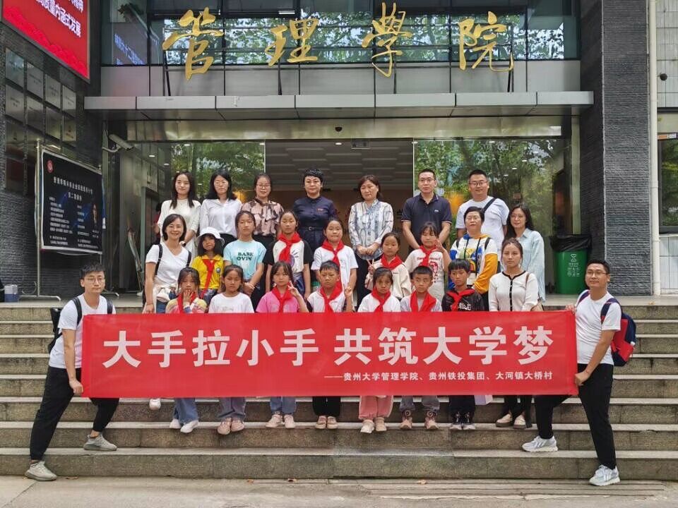 上午,大桥村小学的小朋友们跟随老师和大桥村驻村第一书记薛洲,在管理学院团委负责人车婧娴和学院青协志愿者们的热烈欢迎中走进了贵州大学的校门。