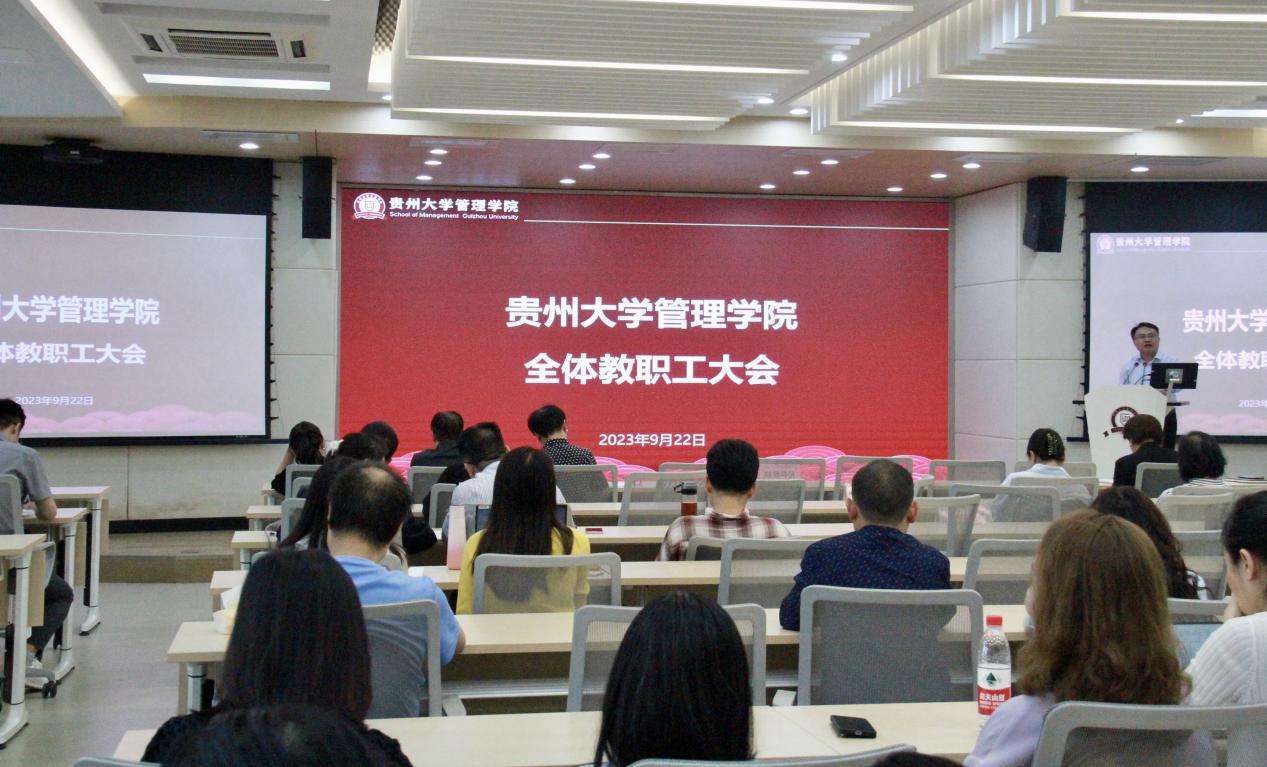 随后,学院各分管领导通报、部署近期工作。院党委副书记邓琳对学生工作、“博学计划”工作、工会工作、关工委工作做了通报、部署。并按照校纪委要求,对贵州省11起违反高校教师职业行为十项准则典型案例作了通报;副院长宋山梅对《贵州大学教学事故认定以及处理办法(修订版)》相关要求进行了通报,并就一流专业建设、本科审核评估做了安排部署;副院长李本光对《管理学院教学科研积分管理办法》、研究生培养、科研工作等作了通报与部署。
