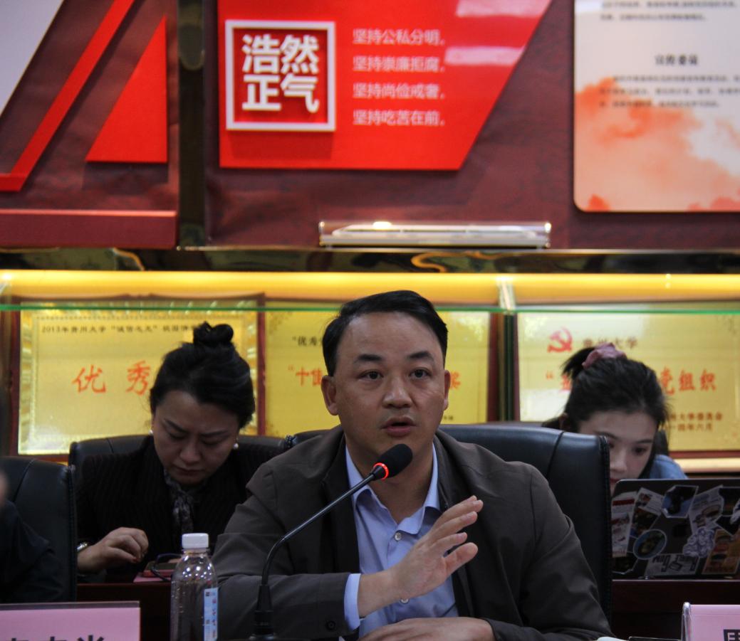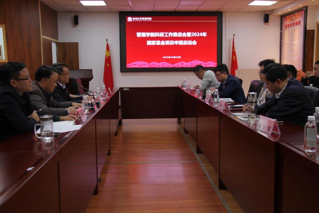 贵州大学人文社科处副处长周乐欣教授对管理学院过去的科研工作情况表示肯定,同时对人文社科的课题申报及研究讲述了自己的认识和理解,强调管理学学科学术研究要与国家重大战略需求结合的重要性。同时勉励学院各老师要再接再厉,力争完成2024年学院科研目标任务。
