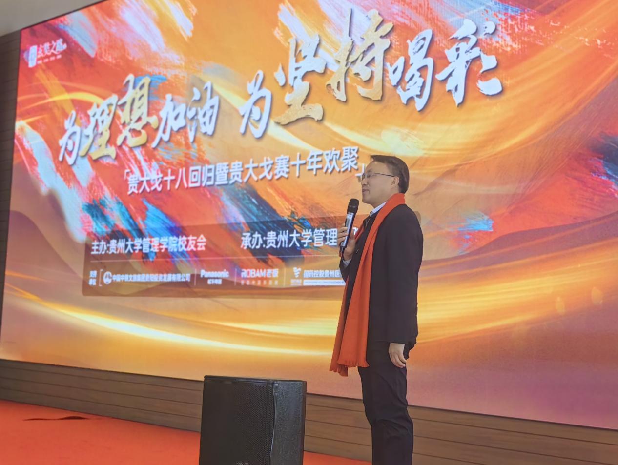 20231223日,戈十八回归暨贵大戈赛十年欢聚庆祝活动隆重在中铁文旅青岩康养小镇举行。今年是玄奘之路戈壁挑战赛第18年,也是贵大参加戈赛10年。贵大管院院长、校友会会长李烨,贵州大学党委正处级组织员、管理学院党委副书记(主持党委工作)周莉莉,管理学院副院长王婷、管理学院党委副书记、纪委书记邓琳、西部戈友联盟会长蒋磊、管理学院校友会执行会长张钊、MBA校友会会长汪健,贵大研究生导师胡文(校友)、中铁文旅贵阳公司总经理胡永清、副总经理梁济光、130余名戈友、校友、各届友人以及贵大EMBA“18”品牌赞助商、合作伙伴代表齐聚盛会,为戈十八喝彩,为戈十八战队中的每一位勇士感到自豪,为贵大戈友的坚持加油!
