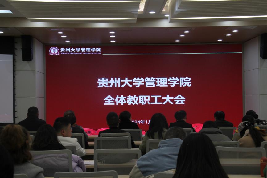 2024年1月8日,学院全体教职工大会在致远楼三楼报告厅举行。学院全体教职工参会,大会分为三个阶段进行,学院院长李烨教授主持此次大会。