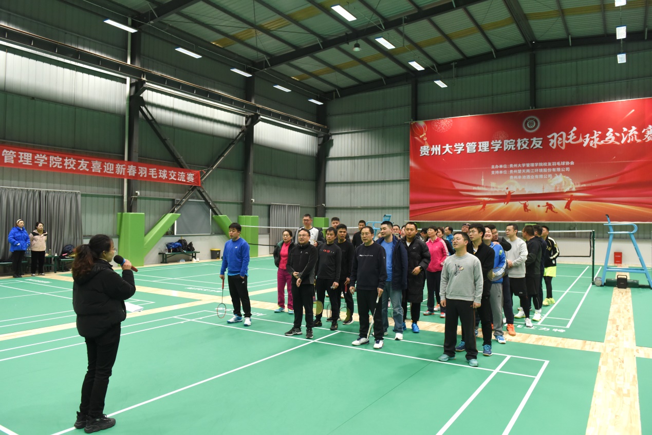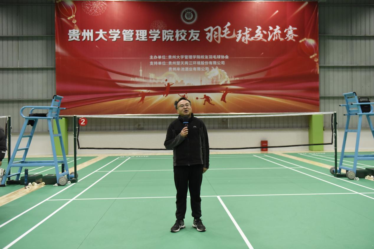 开幕式前,管理学院校友羽毛球协会会长leyu2002级MBA校友、2009级EMBA校友、贵州楚天两江环境股份有限公司董事长胡文代表校友致欢迎辞,对各位老师、校友的到来表示欢迎。胡会长说因为羽毛球,我们相聚在这里,以球会友、以球交友。希望大家秉持“友谊第一、快乐第二、比赛第三”的精神享受比赛。希望今后羽毛球校友会的会员接力将管院校友羽毛球友谊赛办下去,促进校友间的交流与合作。