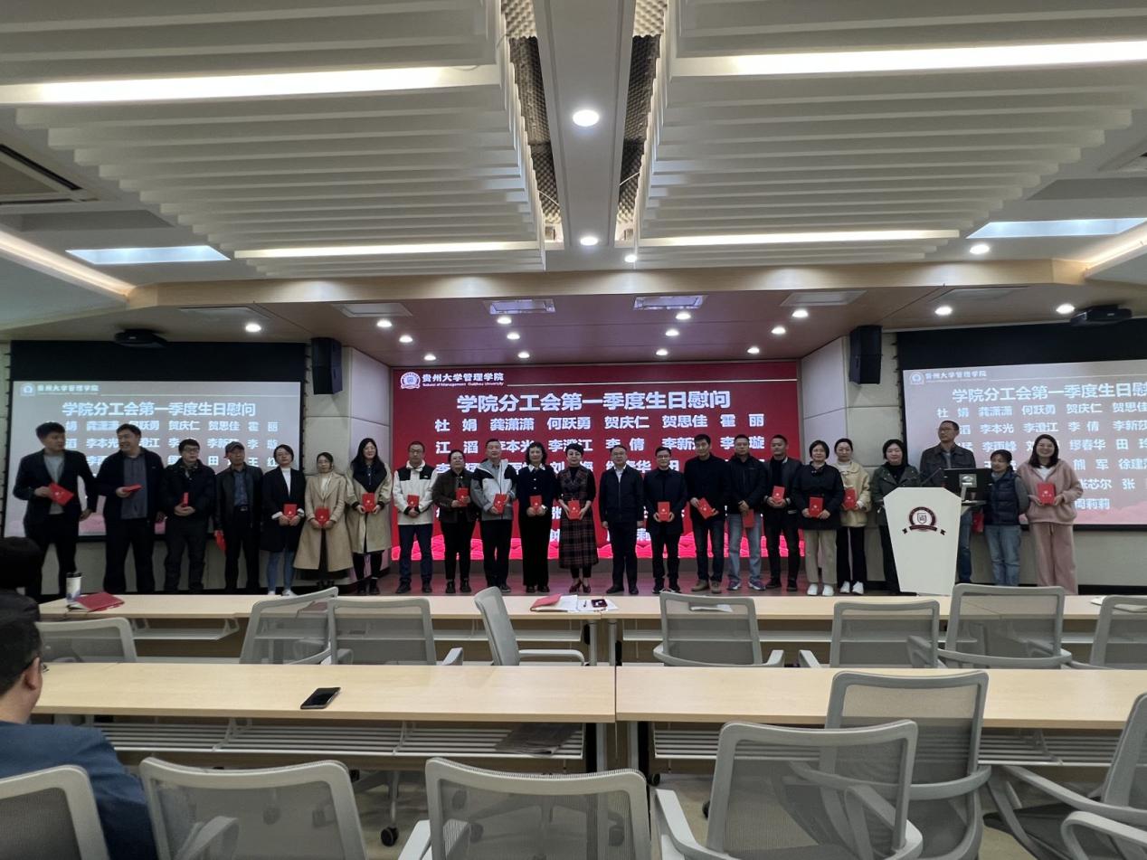 最后,学院领导及学院工会为第一季度过生日的教职工进行生日慰问,预祝他们在新的一年生活美满、事业有成、幸福安康!