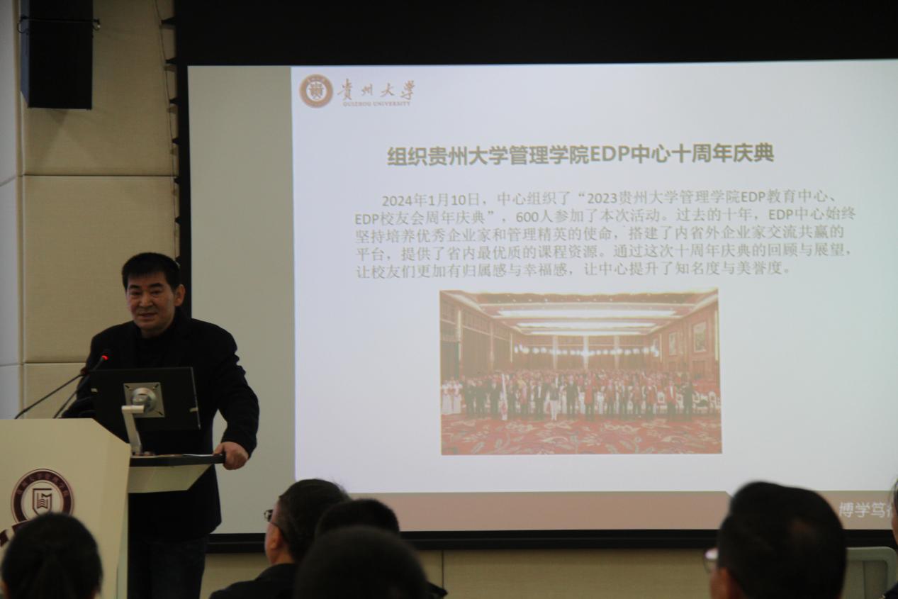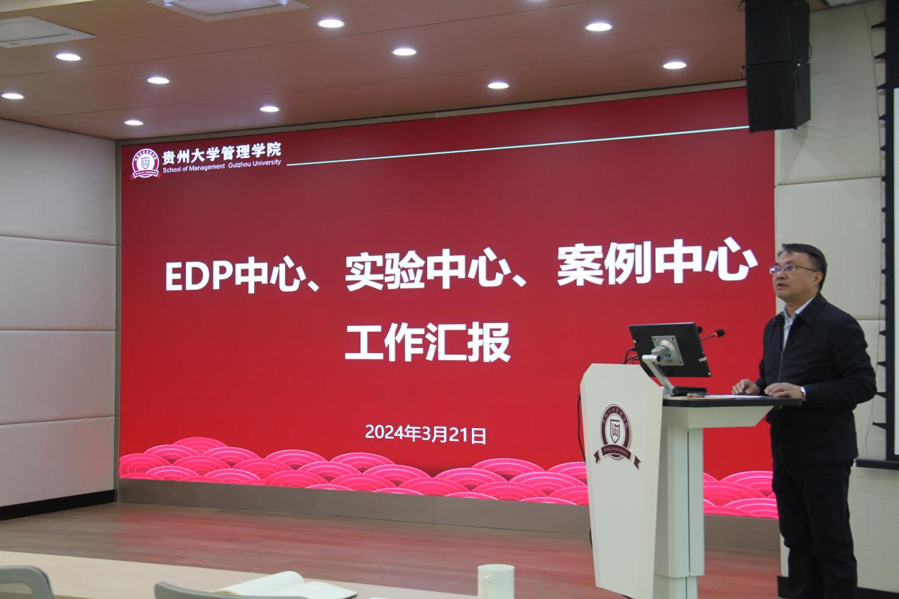 会议第二项,各相关部门作工作汇报。EDP教育中心负责人从乡村振兴、干部能力培训以及企业数字化转型三个方面介绍了2023年工作情况,同时也汇报了2024年的工作计划和展望;实验中心负责人从工作研究成果、问题及存在的挑战以及今年的工作期许三部分来展开;案例中心负责人介绍了原创案例的开发与建设、案例教学的成果、案例比赛情况以及2024年的工作目标;教学督导组通报本学期教学督查情况,主要从教学总体情况、教学建议、以及学院对教学督导的进一步要求(全过程领导、全方位实施、全员覆盖)三个方面作了通报。