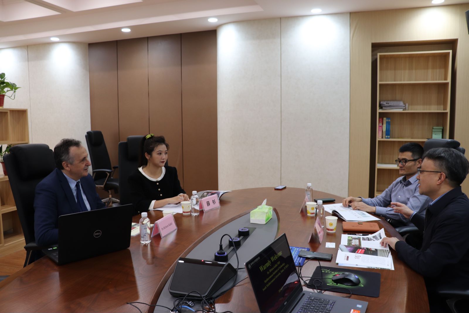 首先,李烨院长向Hichem Kallel教授介绍了leyu的基本情况。他指出,管理学院高度重视学院的国际化发展,目前学院有专任教师110余人,其中10余人毕业于海外高校。中国的持续发展,特别是当今贵州的快速发展吸引了越来越多的优秀海内外人才加入到leyu。学院在未来将持续强化推进国际交流与合作工作。