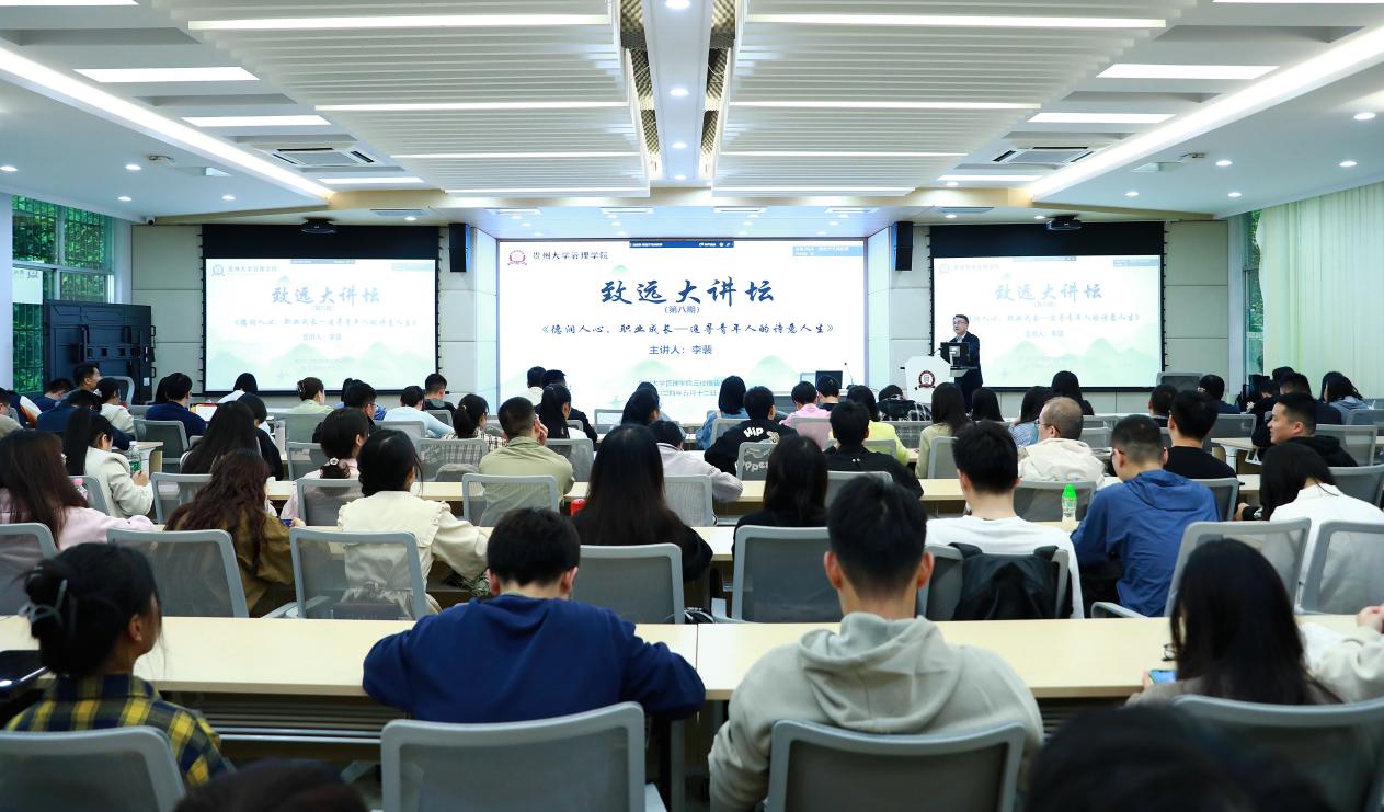 2024年5月12日,leyu“致远大讲坛”第八期讲座在东校区致远楼三楼报告厅顺利举行。本期讲坛由李烨院长主持,主讲人是贵州绿色发展战略高端智库首席专家——李裴。MBA2023级学生及本科生共130人参加本次大讲坛。