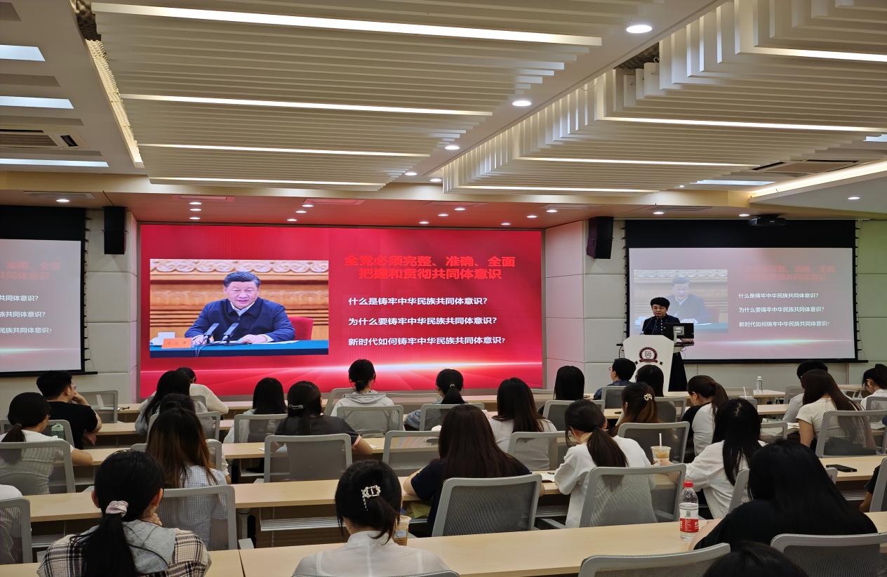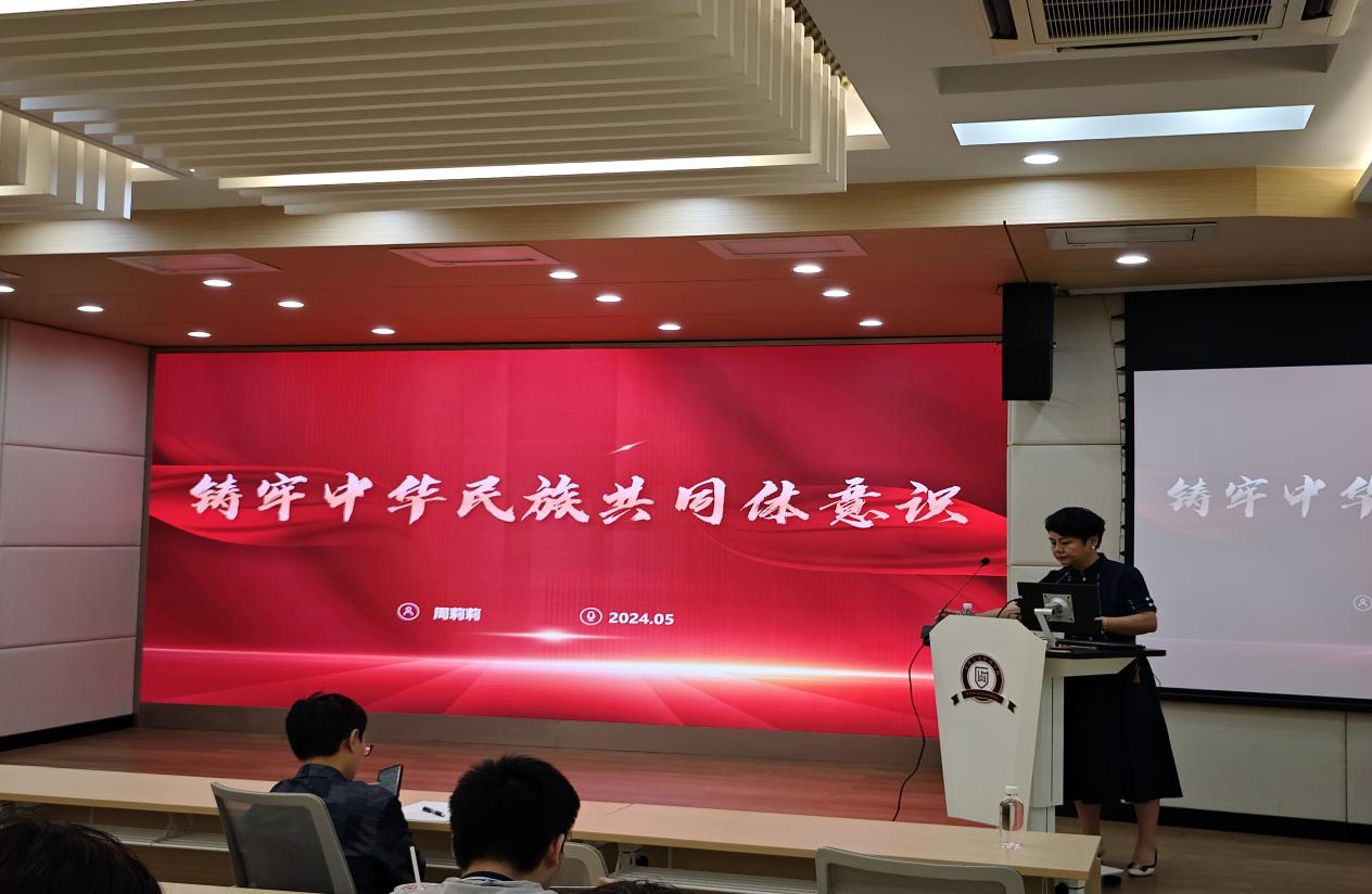 为深入学习贯彻习近平总书记关于加强和改进民族工作的重要思想,全面贯彻党的民族政策,引导广大党员同志铸牢中华民族共同体意识,5月24日,校党委正处级组织员、学院党委副书记(主持党委工作)周莉莉同志在致远楼管理学院三楼报告厅为本科生党员讲授“铸牢中华民族共同体意识”专题党课。本科生三个党支部90余名党员参加。