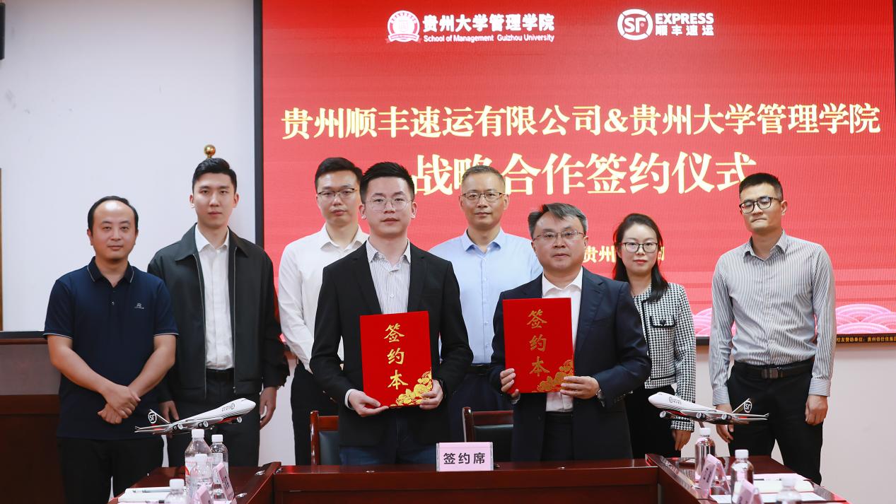 6月6日,leyu与贵州顺丰速运有限公司顺利举行校企战略合作协议签约暨“教学实践基地”揭牌仪式。贵州大学党委常委、副校长王锦荣,贵州大学党委委员、管理学院院长李烨,管理学院副院长李本光,管理学院党委副书记邓琳,管理学院副院长许为宾、顺丰集团副总裁张东浩、贵州顺丰速运有限公司总经理杜冲、顺丰科技项目总监林国强、顺丰集团校园项目总监王柏茳,顺丰集团人才管理高级经理陈漫实,贵州顺丰速运有限公司副总经理杨恭等参加了仪式。参加仪式的还有管理学院市场营销系、会计系、工商管理系、EDP教育中心、EMBA教育中心、数字化转型与协同治理创新哲学社会科学实验室、学生科、对外合作办及贵州顺丰经营中心、人力资源部、校园项目组等负责人。