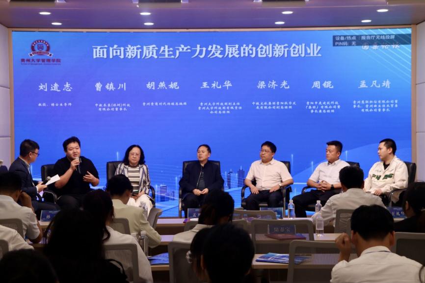 在讨论会上,各位同学通过结合时代使命和自身的发展,积极向各位嘉宾提出困惑以及创新创业过程中所面临的难题,针对同学们的疑虑,各位嘉宾给予积极回复,在答疑解惑的同时又向同学们分享了诸多实用知识,并鼓励大家要抓住时代机遇,紧跟国家政策,深入思考新质生产力的重要内涵,以更好地开展创新创业回馈家乡和社会。