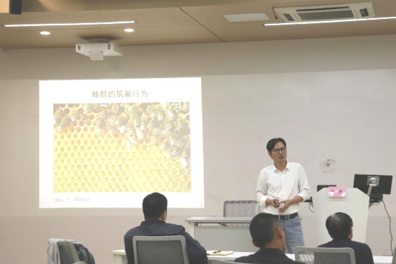 讲座第二项,群体智能。他强调,群体智能,是新一代人工智能的重要领域。国务院于2017年7月8日印发并实施《新一代人工智能发展规划》,其中介绍了新一代人工智能发展的五大重点方向,第二重点方向即群体智能。牛奔教授还介绍了自然界中的群体智能,如蚁群的沟通与决策、蜂群的筑巢行为、鸟群的飞行队形、细菌的游动和翻转等,由此引入群体智能优化算法:粒子群算法、蚁群算法、蜂群算法、细菌觅食优化算法等。