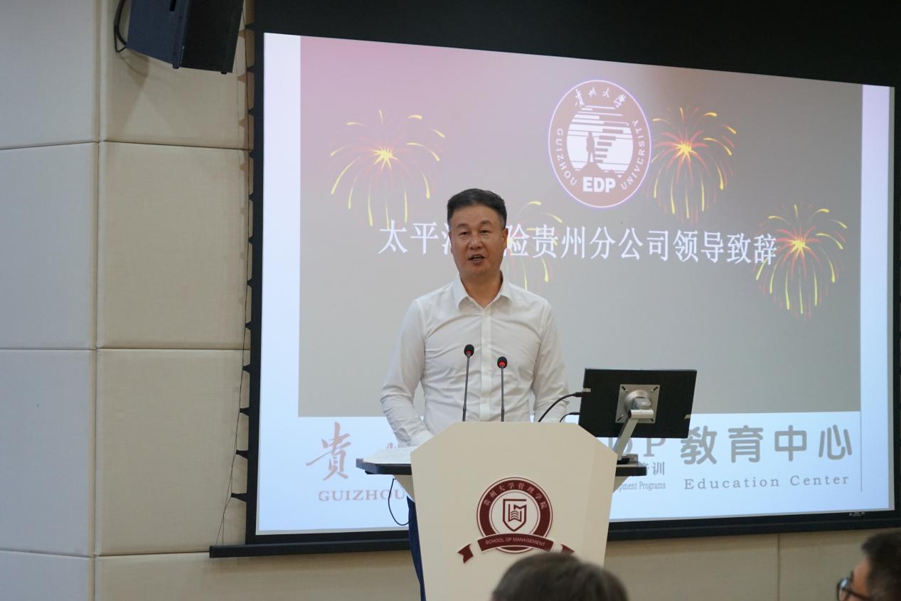 太平洋寿险贵州分公司党委书记、总经理王秋生在致辞中介绍了中国太平洋人寿保险公司贵州分公司的概况,并表达了对本次合作的三个期许,期许中不仅对本此合作的高度评价更是表达对贵州大学的由衷信任,并表示继本期培训班后,将持续有计划的在leyu开展系统的、针对性强的、多类型的人员培训。