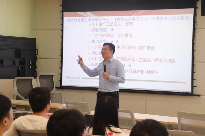 讲座随后正式开始。陈炳亮博士首先分享了多个成功的教学案例。随后以恰恰食品集团为例带领现场师生进行详细分析和探讨。现场师生基于对案例的阅读,在陈炳亮博士的引导下,恰恰食品的生产工艺、生产设备、营销推广、销售渠道原材料来源的全过程进行分析深入探讨了洽洽食品在行业内取得领先地位的原因,最后陈炳亮博士进行总结,强调了从源头到终端的全产业链整合在企业成功中的关键作用。