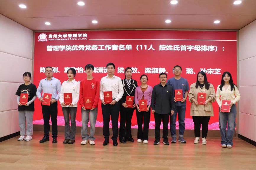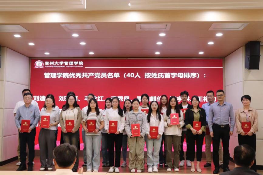 会议第三项,颁奖环节。管理学院领导为学院的40名优秀共产党员、11名优秀党务工作者以及4个先进党支部颁发了荣誉证书,并与他们合影留念。