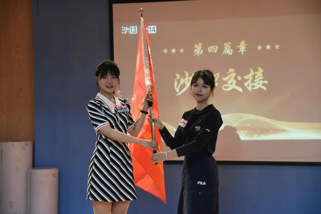 第四篇章:沙14交接仪式。夙愿达成的喜悦充盈着我们的内心,但是对胜利的渴望从未因此而熄灭。沙鸥奖证明了我们的坚韧意志和不灭勇气,而金沙鸥必将再次见证我们贵大亚沙人的团结之魂和进取之心。在今晚,象征着贵大亚沙人品质,精神与荣耀的的旗帜将由沙十三领队刘紫淳传承交接给沙十四领队谢明珠。