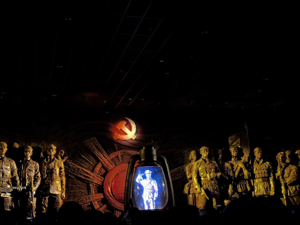 本次参观学习包括无名英雄、血火洗礼、伟大转折、砥砺征途、胜利丰碑以及新时代新长征六个篇章,集合 AI 虚拟交互、全息影像等最新科技手段,数字化全景再现长征之路